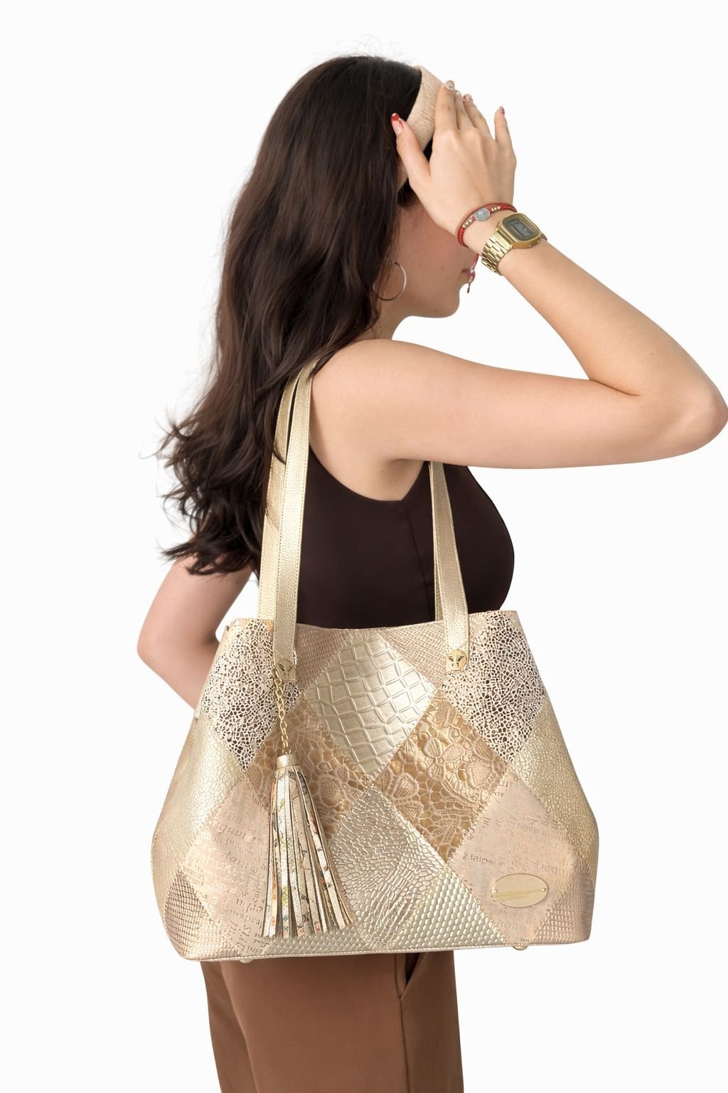 Bolso Amplio en Cuero Patchwork con Borla Aurora – NC-B022