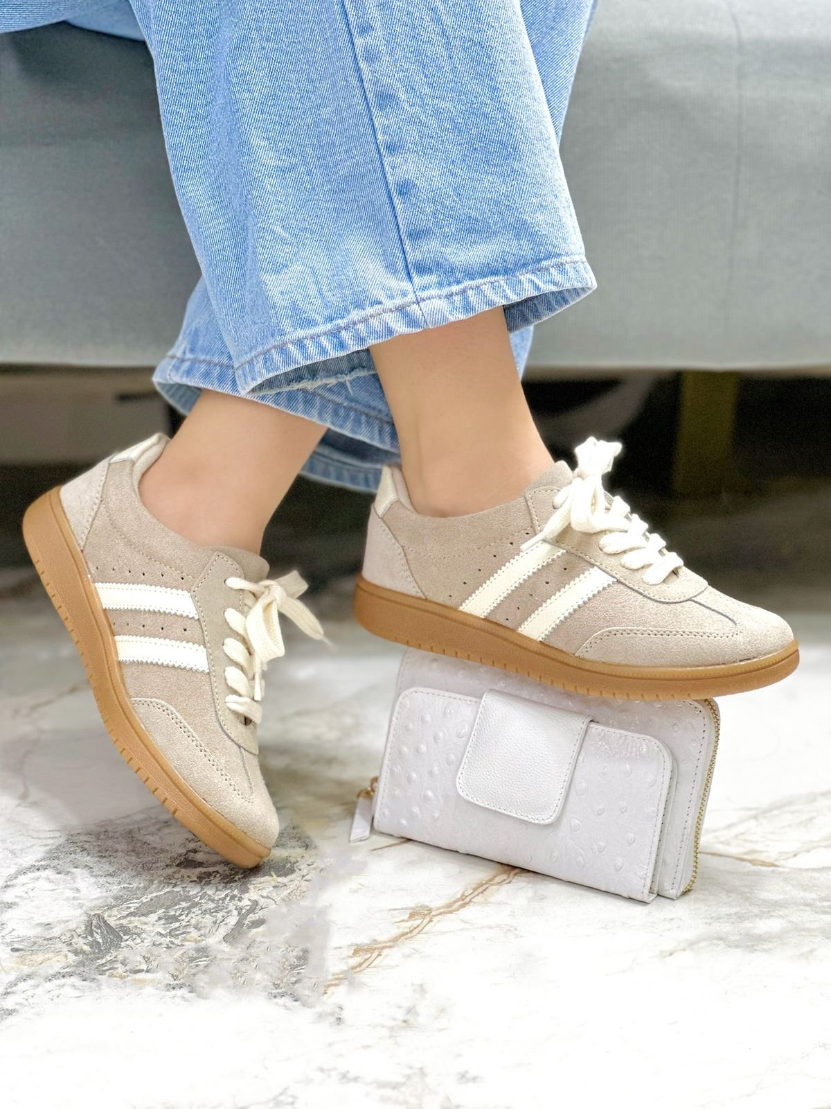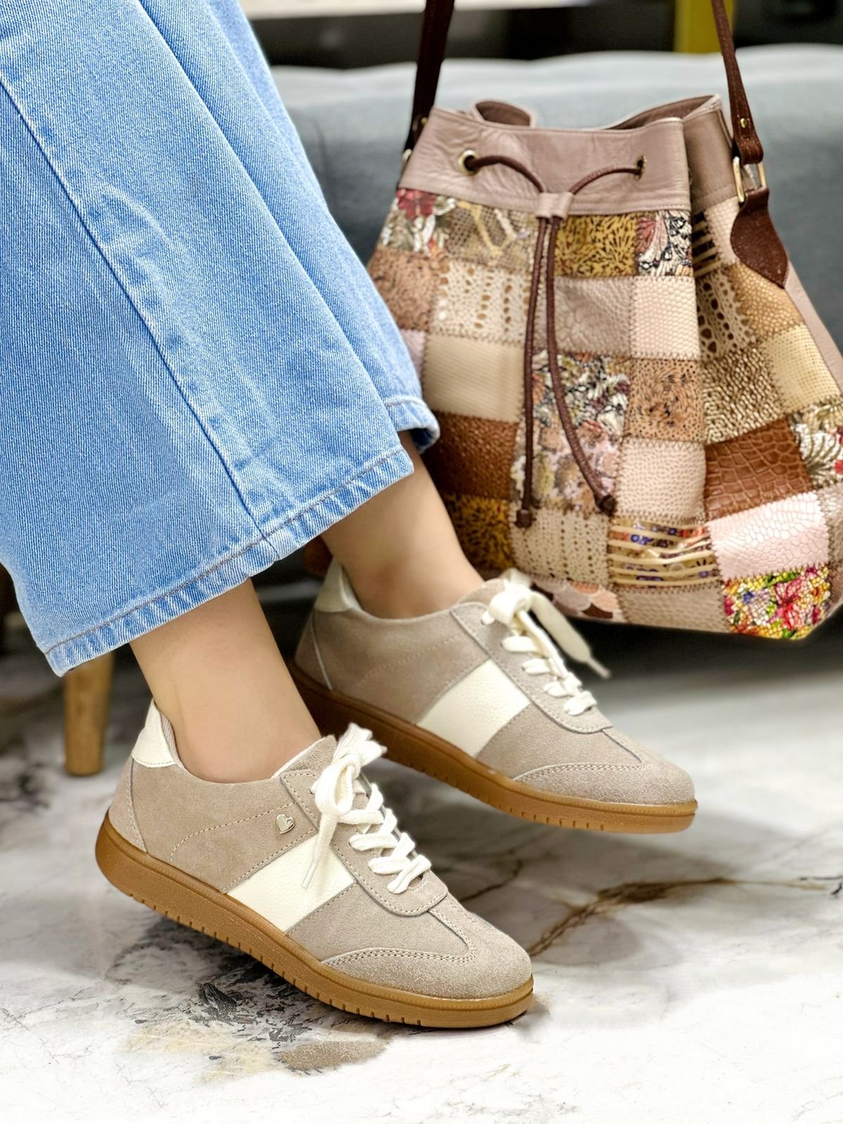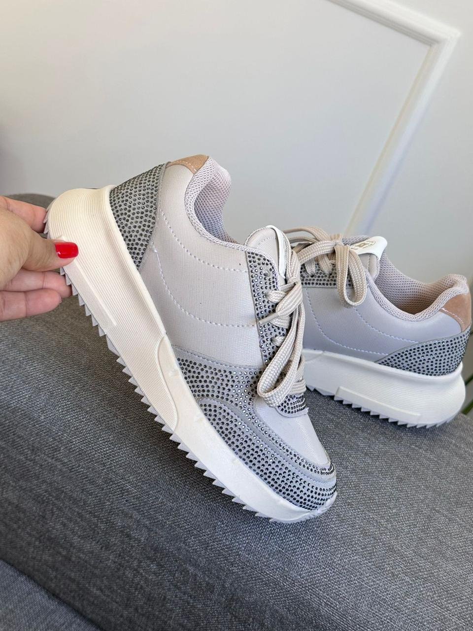 BEIGE X BRILLO GRIS SINTÉTICO