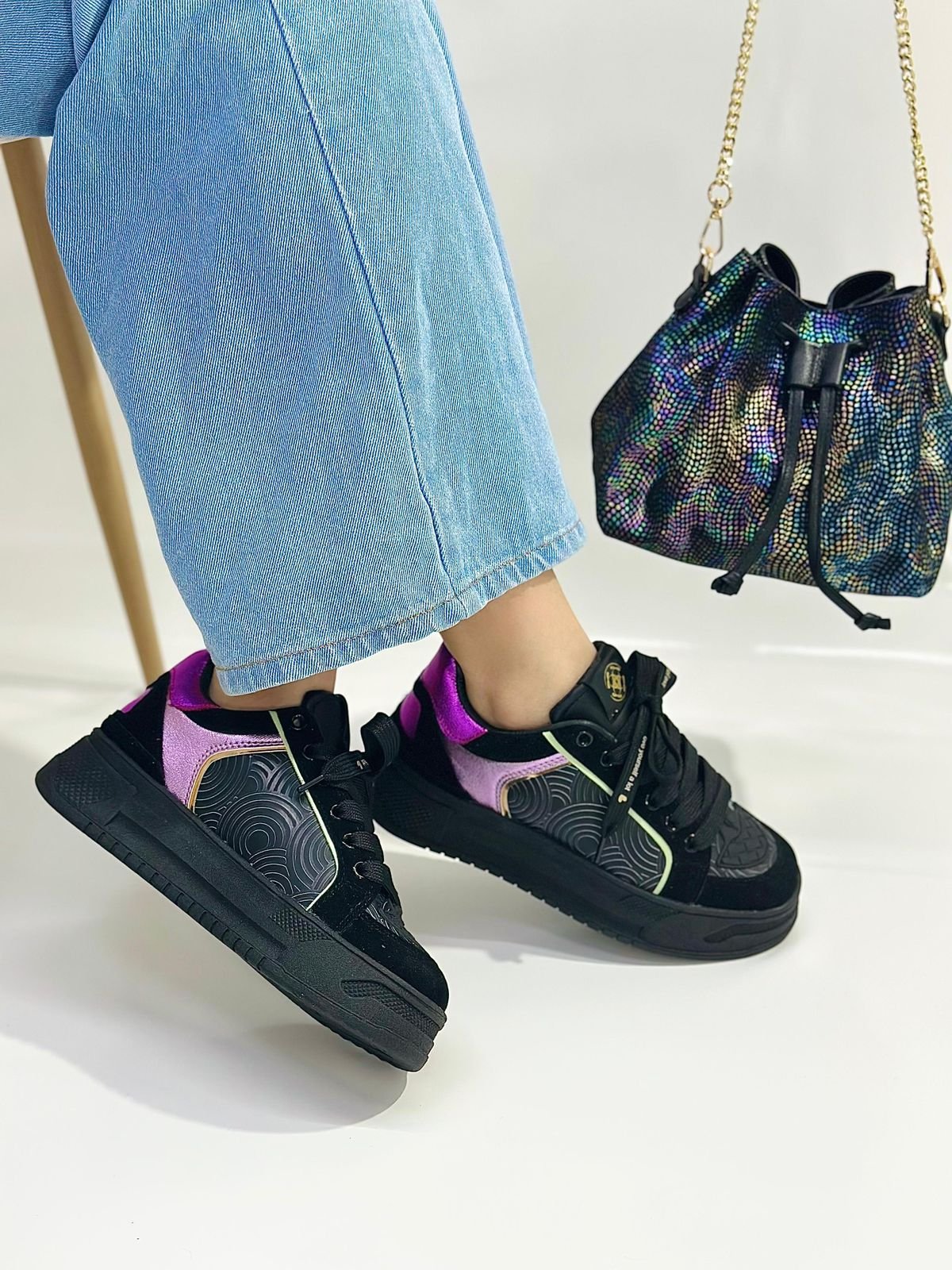 NEGRO POR LILA Y DORADO