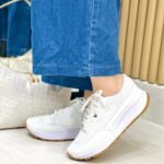 Su suela blanca ligera y flexible brinda excelente comodidad en cada paso, absorbiendo el impacto y proporcionando estabilidad. El blanco de la suela resalta su estilo urbano y versátil.