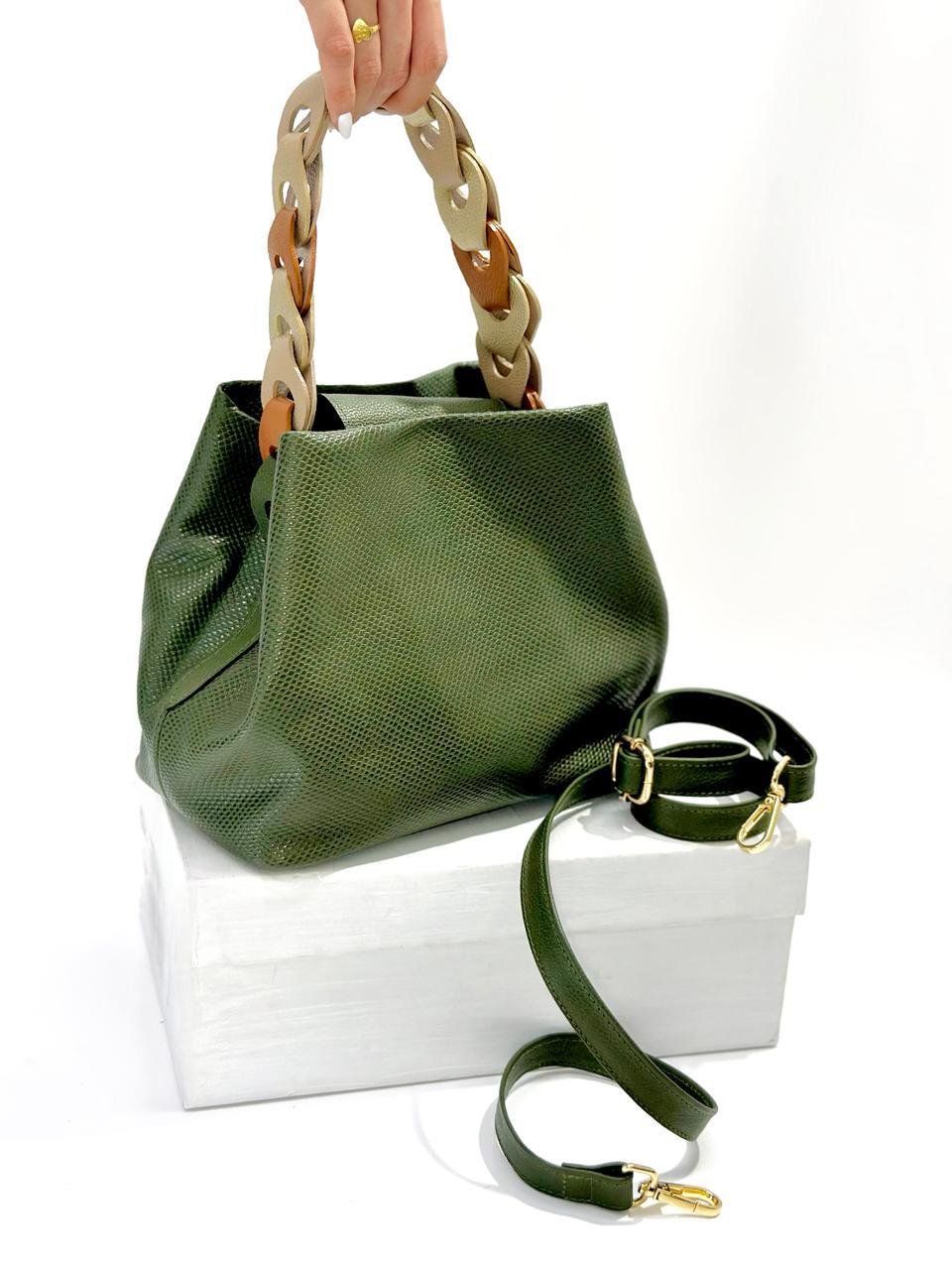 👜 Bolso en Cuero – Colores Dorado y Verde