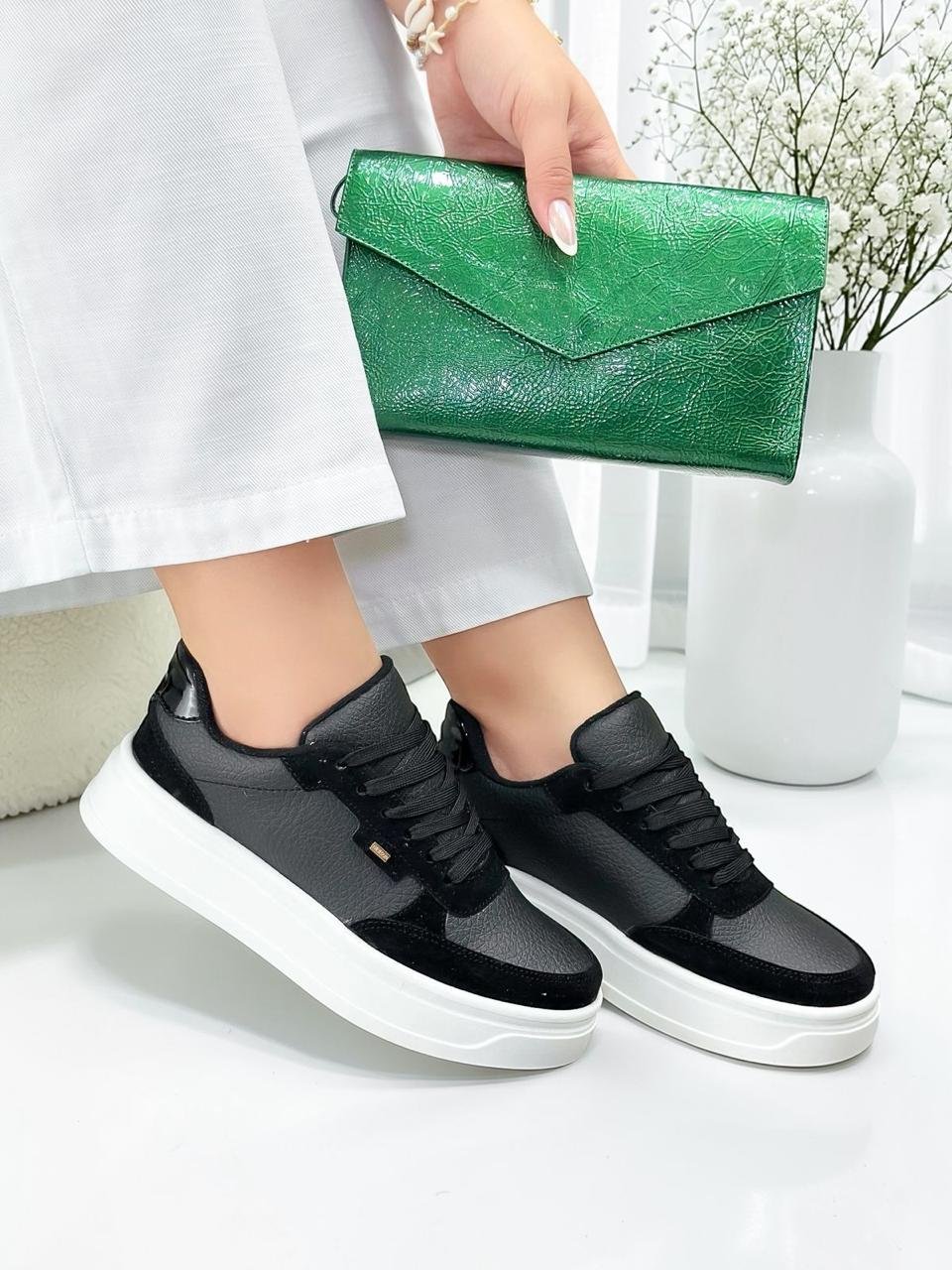Estos tenis totalmente negros, incluyendo su suela plana, ofrecen un diseño limpio, moderno y versátil. Perfectos para complementar cualquier outfit, desde casual hasta urbano, aportando un look minimalista y muy sofisticado.