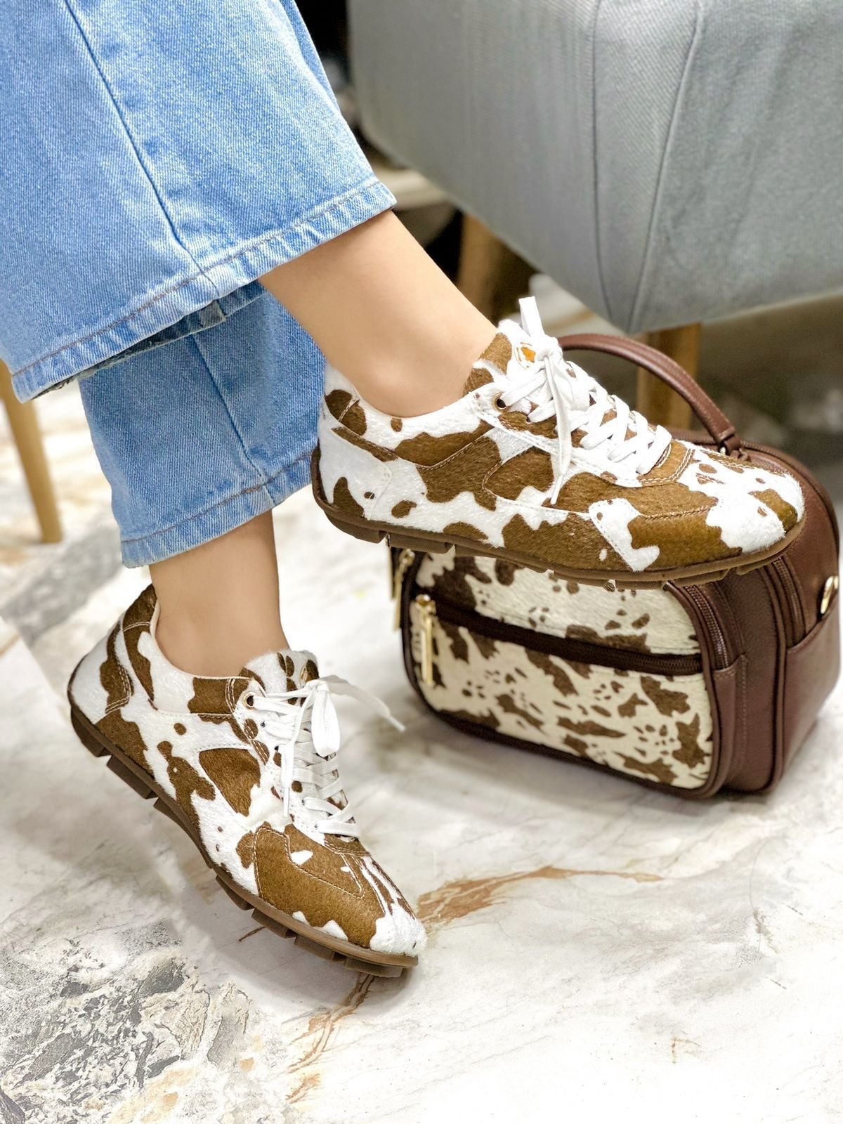Tenis en Material Sintético con Diseño de Pelo de Vaca 🐄