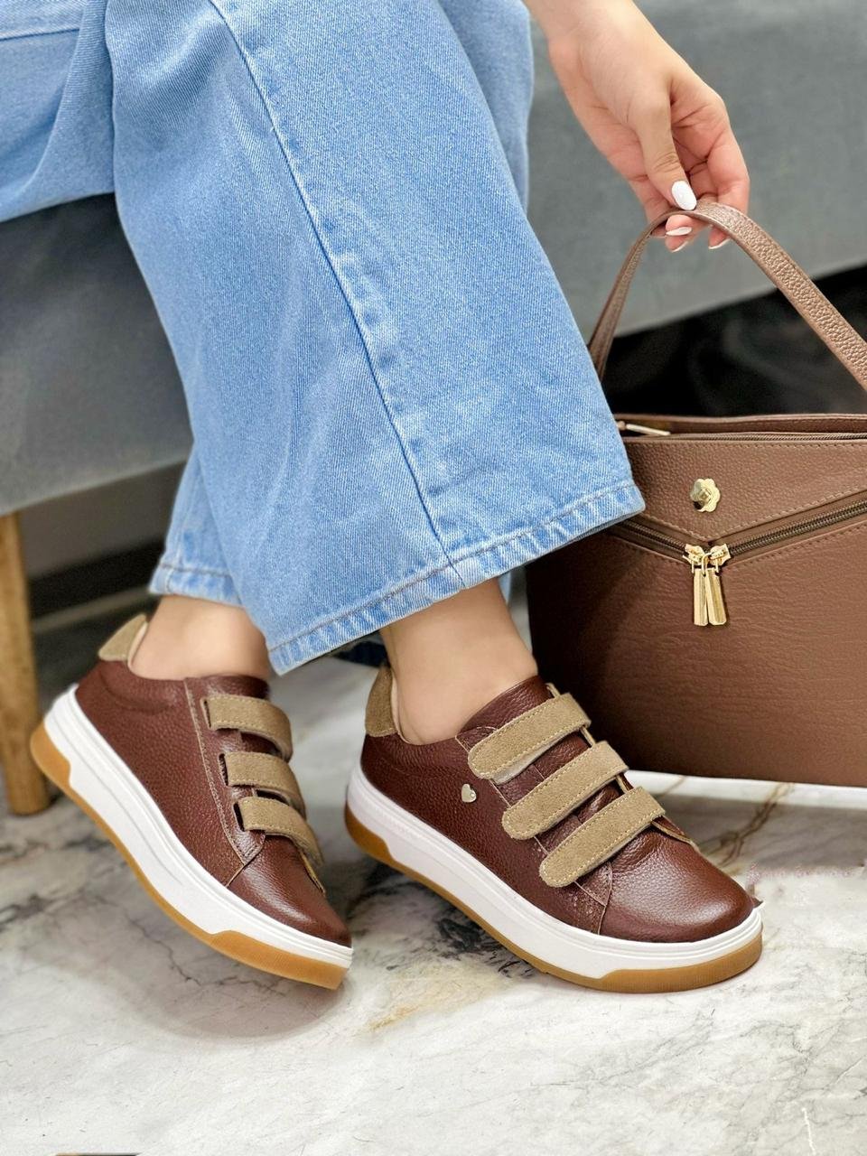 Estos tenis en cuero color Avellana con detalles en la parte de arriba con velcro en tono Camel, es el equilibrio perfecto entre elegancia y frescura. Su diseño minimalista lo hace lucir sútil y casual, pero a la vez lo convierte en un calzado que no te puede faltar.