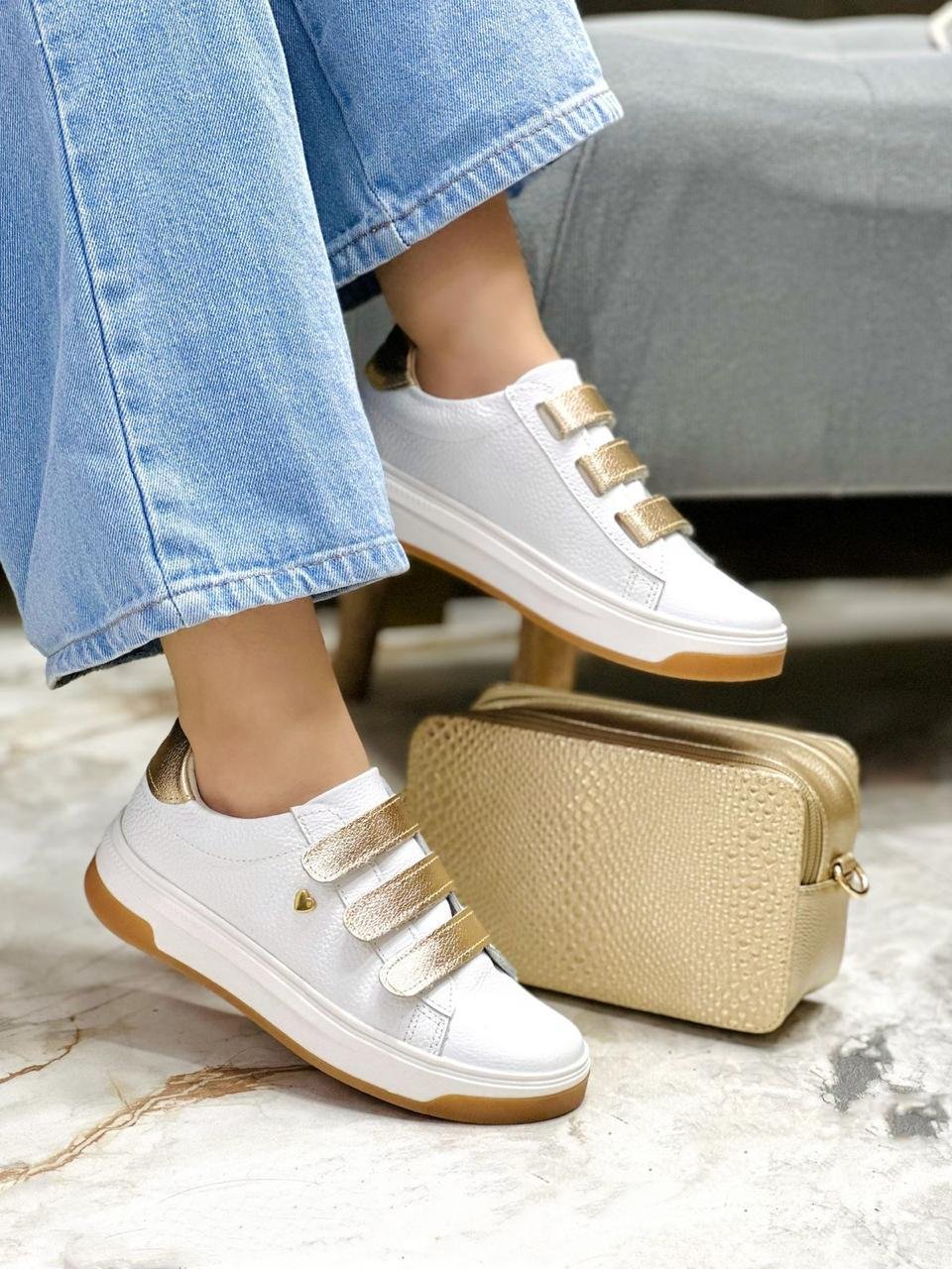 TENIS BLANCO X DORADO CUERO 700